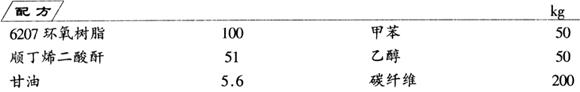 制法 将甲苯与乙醇混合,用来稀释环氧树脂,完全溶解后加入甘油和顺丁烯二酸酐,充分混合均匀。用浸渍或喷涂方法将碳纤维浸透、晾干,入模压制成型,加温固化。 固化制度:60℃下2h,80℃下2h,90℃下4h,120℃下3h,160℃下6h,200℃下6h。冷后脱模,即为成品。 |