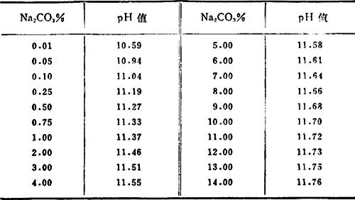 纯碱溶液浓度与pH值(25/4℃)对照表