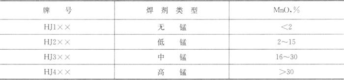 表1.5-10 焊剂牌号中SiO2和CaF2的含量的划分