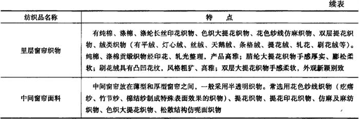 里层窗帘在美化室内环境方面起着重要作用。对窗帘质地、图案色彩要求较高,在窗帘深加工方面也比较讲究。里层窗帘要求不透明、有隔热、遮光、吸声等功能。选择以粗犷的中厚织物为主,所用原料有棉、麻及各种纤维混纺。