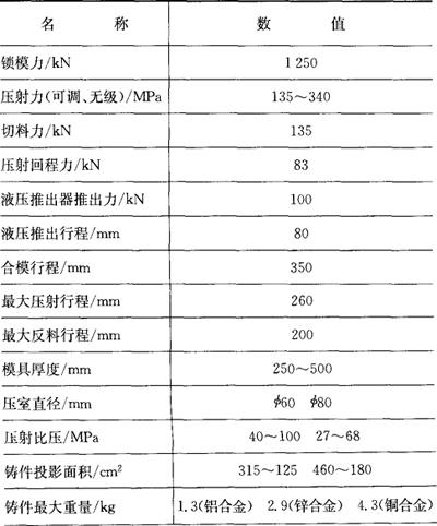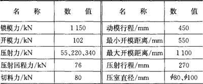 表3.4-3 J1513型压铸机主要参数