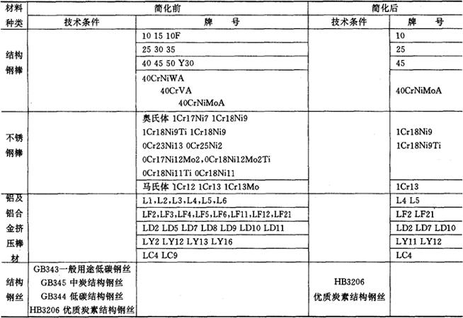 | 释义 | 简化的对象和应用范围 广义地说,生产活动中,凡能更好地提高生产和使用效率的要素都是简化的对象。在工业领域内,从工业产品、零部件、材料的品种规格,直到构成产品及其零部件的性能参数、结构要素、加工和测试用的工艺装备等,都是简化的对象。它们既可以是构成产品实体的硬件,也可以是相应的软件或是一个工艺或服务的过程。 1.简化产品、工艺装备品种规格。整个产品或工艺装备品种规格的压缩简化意味着整个产品生产、维修等一系列生产组织管理活动的简单化,对组织生产、提高效率和维修所带来的效益非常巨大。如我国对工业阀门的压缩简化,缩减了品种,调整并撤消了若干条工艺落后的生产线,提高了生产效率和质量。因此,尽管整个产品的压缩简化工作难度很大,它仍是简化的重要内容和目标。 由于与产品相关的性能参数、几何参数、使用环境条件等因素很多,因此要简化产品品种规格,以一种或几种品种规格代替更多种,技术上困难就大些,而且层次愈高,难度愈大。这项工作往往要从全社会、全行业范围来组织实施,组织上亦较复杂。因此,产品品种规格简化虽然不乏成功的例子,但人们往往将简化的目标首先瞄准到层次较低、相关参数较少、易于见效的零部件、材料品种规格上。 2.简化零部件品种规格。因为零部件品种规格的增多直接阻碍生产效率的提高,给使用维护带来不便。所以我国50年代有自己的工业生产以来,零部件(例如各种紧固件、小零件)品种规格的合并简化,一直是行业和企业标准化工作的主要对象和内容。 3.简化材料品种规格。材料品种规格的增多给订货、入厂检验和定期复验、仓库保管和发放、热表处理工艺都带来复杂化和多样化,所以也是简化的主要对象。 表3.2-1A和表3.2-1B是某企业材料品种简化前后的对比。 表3.2-1A 金融材料品种简化限用表 (摘自庆安宇航公司企业标准)