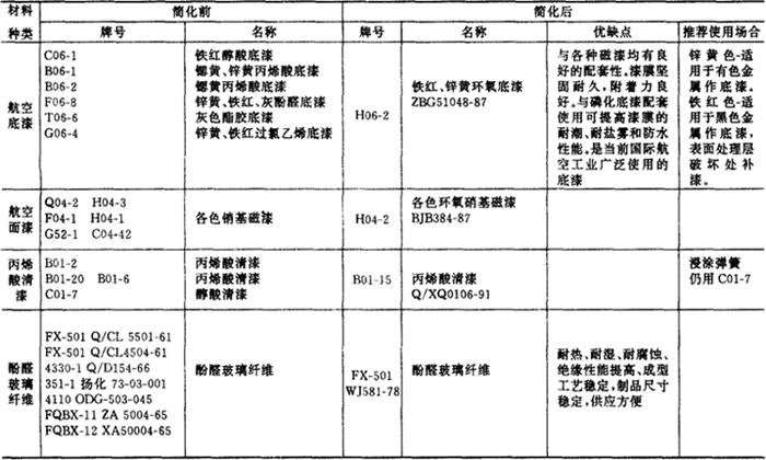 表3.2-1B 非金属材料品种简化限用表 (摘自庆安宇航公司企业标准)