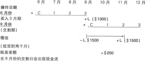 下面介绍如何利用借出来延展开放的多头头寸(调期) 例 要求采取的操作:借出现货日到2个月-现货日=* 假定调期的两个合约价格相同 远期月份-→