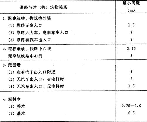 ②道路与建筑物、构筑物的最小间距