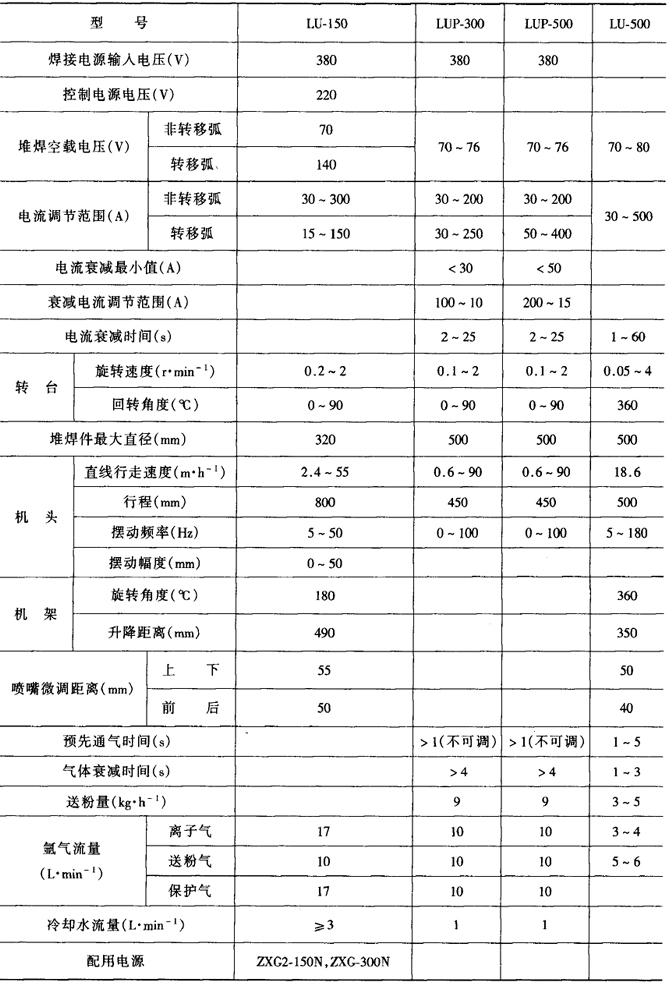表1-7-16给出了国产粉末堆焊机的技术参数。