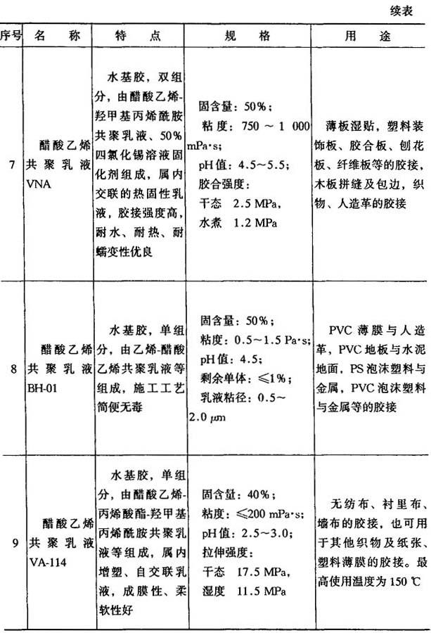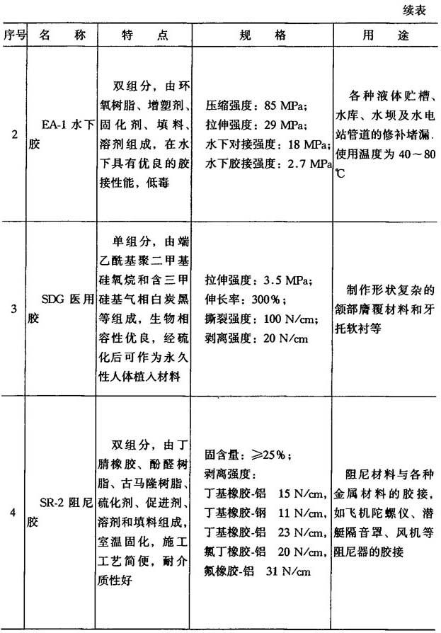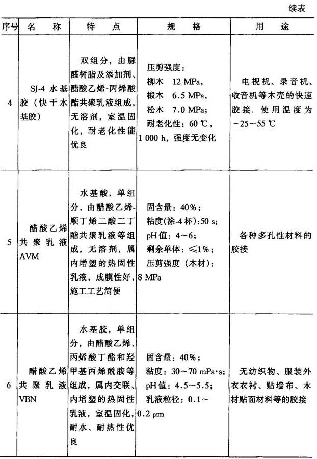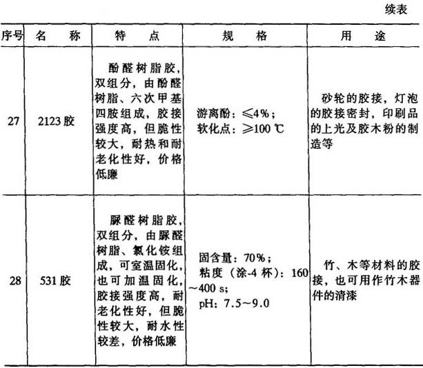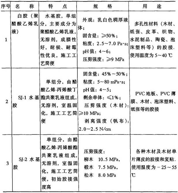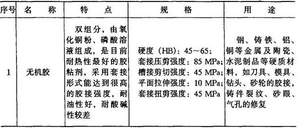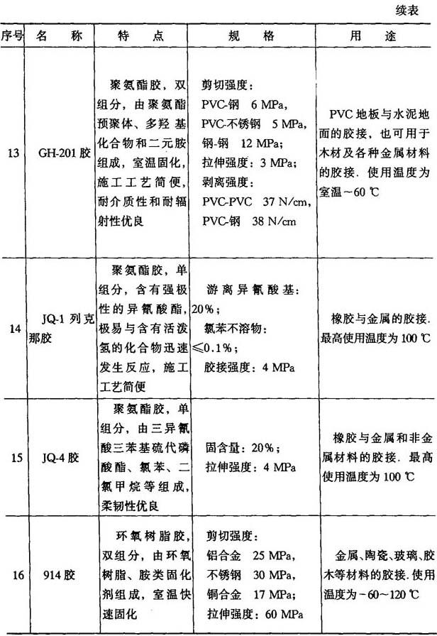 表8-11 其他胶粘剂