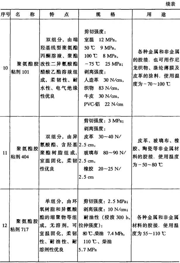 (2)通用型胶粘剂 如表8-6所示.