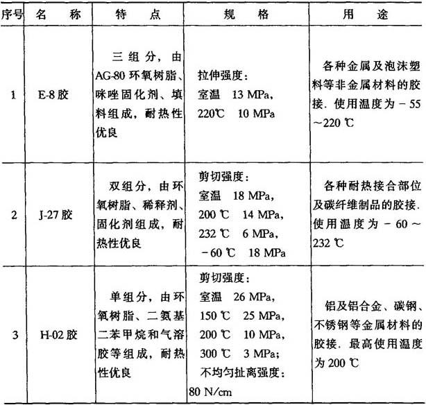 表8-8 耐高温胶粘剂