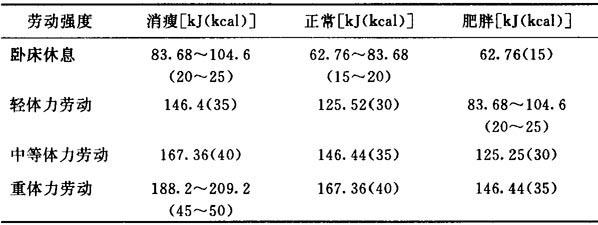 (c)糖尿病神经病变 糖尿病神经病变是糖尿病最普遍的并发症,被分为周围神经病变和自主神经病变。 周围神经病变: ●对称性的周围神经病变(多神经病变); ●单周围神经病变; ●脑神经病变; ●神经根病变。 自主神经病变: ●心血管系统,包括心动过速、体位性低血压、无痛性心肌梗死及心脏猝死。 ●消化系统,包括食管和胃动力异常(吞咽困难、胃轻瘫)、胆囊收缩功能异常和排便异常。 ●泌尿生殖系统,神经源性膀胱,阳痿与不育。 ●其他,包括出汗及皮肤温度异常、未察觉的低血糖及瞳孔改变。 糖尿病神经病变的诊断:糖尿病神经病变的诊断过去主要依靠症状和特殊体征的主观解释作出诊断,目前多采用电生理检查,测定感觉和运动传导速度及肌电图等手段进行病变定位和病变程度的估计。 b.大血管并发症 糖尿病患者并发动脉粥样硬化,如冠心病、脑血管病及周围血管病的危险性大大增加,其危险因素包括血脂异常、高血压、肥胖、高血糖及血凝改变,致使这些血管病变发生早,发展快,是糖尿病患者致死致残的主要原因。 (a)冠心病 糖尿患者冠心病致残和死亡率是同年龄组非糖尿患者的2~3倍,且发生左心衰、心源性休克、心律失常、传导阻滞的频率和程度都高。 (b)脑血管病变 糖尿病脑血管病变的发生率较非糖尿病明显增高,并以脑梗死为多见。 (c)周围血管病变 引起下肢闭塞性脉管炎。大血管病变的诊断和治疗参照有关章节。 【治疗】: 糖尿病的治疗是一种综合治疗,包括对患者的教育、饮食治疗、运动疗法、药物治疗等几个方面。 1.糖尿病教育 教育是糖尿病综合治疗的前提,教育内容: (1)向患者及家属介绍有关糖尿病的知识,及控制血糖的重要性。 (2)明确血糖控制的目标(空腹血糖控制良好指标为<6.1mmol/L,至少应<7.8mmol/L,餐后2h<8.0mmol/L,不应高于10mmol/L)及不达标的危害性。 (3)教会患者进行饮食计算及换算方法,并主动遵守饮食计划。 (4)教会患者糖尿病治疗管理的基本方法,包括尿糖定性试验、快速血糖测定、服药或注射胰岛素的方法、低血糖的识别及处理、足部护理、自我监测并及时与医生联系。 2.饮食治疗 饮食治疗在糖尿病综合治疗中占重要地位,任何类型的糖尿病,不管病情轻重及有无并发症,是否采用口服药物或胰岛素治疗,都应长期坚持严格的饮食控制。饮食治疗的目的: (1)减轻胰岛负担,纠正糖、脂代谢紊乱,预防或延缓并发症的发生和发展。 (2)维持正常体重,使肥胖者减肥以消除胰岛素抵抗,消瘦者体重增加以保持健康,儿童能正常生长发育。 (3)饮食治疗的方法 1)总热量的确定 糖尿病患者每日热量需要量可根据标准体重及工作强度确定(表8-5,8-6)。标准体重的简单估计法为: 标准体重(kg)=身高(cm)-100(35岁以下-105) 表8-5 糖尿病患者每日每千克理想体重所需热量[kJ(kcal)]