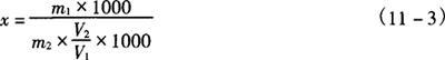 式中 x——样品中糖精钠含量,g/kg或g/L m1——样品测定液中糖精钠的含量,g/L V1——样品定容体积 m2——样品体积(mL)或质量,g |