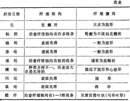 2.显微镜观察法(表18-10) 表18-10 纤维显微镜观察鉴别法