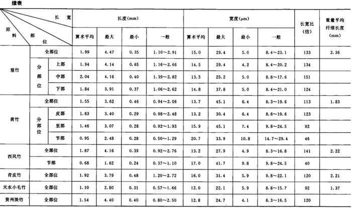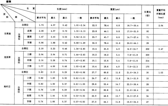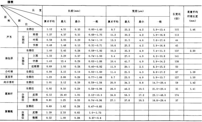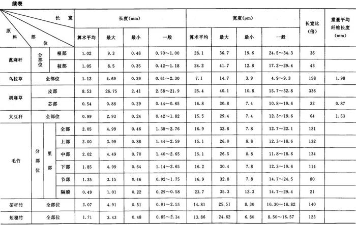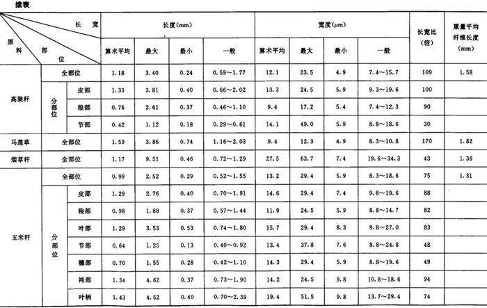 从分析比较表中各项数据,发现以下的几种情况: ①各种原料纤维的长宽度各有不同,但在相同的种类中却有一定的范围。如在长度方面,以棉麻最长,平均18mm以上,树皮类次之(2~8mm),针叶木材第三(3~4mm),竹类第四(1.5~2mm),草类及阔叶木材最短(1~2mm)。在宽度方面,以针叶木材最宽,平均在30~60μm,其他种类都在10~20μm之间。 ②通过分部位观测,大多数原料的纤维,以中部较长,上部次之,下部较短,节部和叶部最短。节部和叶部的结构也比较特殊,常含有较多的非纤维状的杂细胞,这一部分细胞,经常给生产造成困难,影响产品质量。 ③在纤维长宽比的结果中,以棉、麻的倍数最大,平均约为1000倍左右,树皮类次之(170~300倍),竹类第三(120~130倍),草类第四(80~120倍),木材最小(50~70倍)。有人曾把纤维长宽比作为衡量造纸原料质量优劣的标准之一。根据试验的结果来看,理由尚不充分,例如,一般针叶木材较竹类原料好,但其长宽比却次于竹和草。在同类原料中也没有明显的规律,根据实际使用情况,马尾松和落叶松都不如鳞松好,稻草也不及甘蔗渣,但其长宽比恰恰相反。 ④龙须草的纤维细长而柔软,杂细胞也较少,是草类原料中较好的原料之一。各种非木材纤维长宽度比较如表2-5-1所示。 |