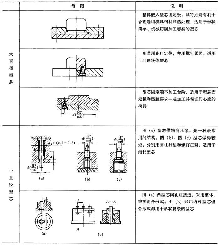常见组合型芯的结构见表4-14。