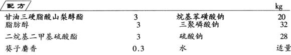 制法 将甘油三硬脂酸山梨醇酯、二烷基二甲基硫酸酯及脂肪醇溶于水中,加热使之完全溶解,再加入其余组分,使其溶解,即为成品。 使用时将织物浸渍在上述配制的溶液中,取出晾干即可。 本品处理纺织物后,对织物具有清洁作用又能使织物散发出芳香的气味。 |