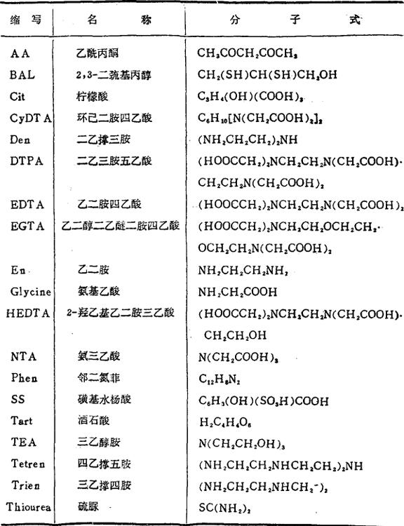 。表中涉及到这种类型络合物时,指示剂的浓度都是10-5M。