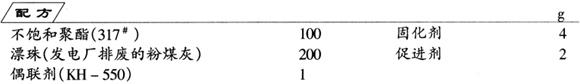 将漂珠先清洗处理,并烘干,再加入偶联剂处理,然后加入不饱合聚酯,混和均匀,再加固化剂、促进剂,混匀,浇注,即为成品。