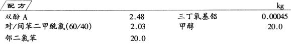将双酚A与对/间苯二甲酰氯以等摩尔比在邻二氯苯溶剂中,以0.01%三丁氧基铝催化剂在180~220℃下进行4~10h缩聚反应,然后,用甲醇等沉淀剂使聚合物沉淀,洗涤,干燥,即可制得聚芳酯。