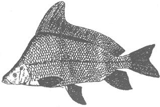| 释义 | 胭脂鱼 (图1-32) 俗称大烧鳊、黄排。在分类学上属鲤科。我国出产的胭脂鱼只有1属1种,分布于长江干、支流及其附属湖泊,福建的闽江也有分布,被列为保护动物。胭脂鱼平时喜欢栖息在江河的中下层,以底栖无脊椎动物为主要食物,具有生长快、个体大和食性广等优点。幼鱼具有观赏价值,在国际观赏鱼市场上十分畅销。在长江上游地区是一种主要的经济鱼类,捕获的最大个体重达10千克。现在,胭脂鱼已被人工驯化,在池塘中饲养。