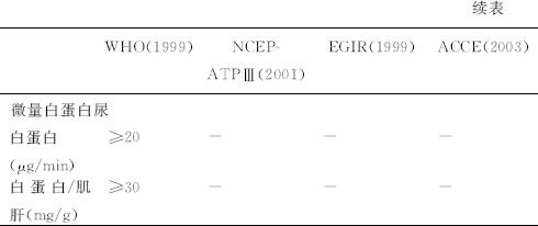 目前研究中较多用的是WHO及NCEP-ATPⅢ标准。而中华医学会糖尿病学分会建议以肥胖、高血糖、高血压及血脂紊乱作为MS诊断的主要组成成分,并未包括IR是因为虽然中华医学会糖尿病学分会认为可以用简易公式计算胰岛素敏感性,但是鉴于目前血胰岛素测定还不是日常诊疗或筛查中的常规项目,更由于胰岛素测定技术尚未能标准化,难以对IR的诊断定出一个统一分割点,故认为在CDS诊断标准中暂时不包括IR项目。而且根据中国人的数据分析,人群中有微量白蛋白尿者大多已可由其他组成成分诊断为MS,所以在中国人诊断标准中不包括微量白蛋白尿。 |