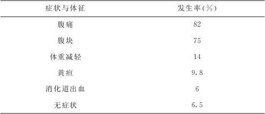 腹部肿块视其大小,小者在上腹部刚能触及,大者可充满整个腹腔,甚至伸入盆腔。腹块一般无触痛,可呈囊性感或坚硬实性感。当继发囊内出血时腹块可骤然增大,腹痛加剧,触痛明显。国内赖传善等报道6例胰腺囊性肿瘤,均因上腹部肿块和腹痛或腰背部疼痛而就诊,其中3例有难以忍受的腰背痛者均为囊腺癌。当肿瘤浸润或压迫胆总管时,可出现梗阻性黄疸。 由于胰腺囊腺癌的症状与体征多无特异性,尤其在肿块较小阶段,常造成临床诊断方面的困难,使许多患者在就诊时症状已存在数月或数年,甚至有长达15年者。Becker等报道,在最终确定胰腺囊腺癌的诊断之前,出现症状的时间为7个月至11年,平均为22个月。 五、检查 1.化验检查 如果患者尿糖和血糖增高,葡萄糖耐量下降,有助于确立胰腺病变的价值。Strodel综合报道的62例胰腺囊腺癌患者中,伴有糖尿病者占11%。 2.X线检查 在腹部平片上,可见囊壁钙化影,其形态为圆形或月牙状。Warshaw报道67例胰腺囊肿患者,其中7例有钙化影者均为胰腺囊腺癌,而胰腺假性囊肿、潴留性囊肿和囊腺瘤患者多无钙化灶。 上消化道钡餐检查一般无特异性诊断价值,但是,如果有十二指肠环扩大、胃或横结肠有移位者,可帮助推测肿块的部位和大小。 静脉肾盂造影也无特异性诊断价值,通过左肾的推移方向和压迫程度,可以了解肿块的部位、大小和生长方向。 3.B型超声检查 可以显示肿瘤的部位、大小及其与周围器官之间的关系,有助于明确胰腺肿块的囊实性,囊腔的大小和多寡,囊内容物、囊壁及其间隔等的结构和形态的特征,为诊断与鉴别诊断提供重要依据。 4.腹部CT 可以较清楚地显示腹部肿块的部位、大小与周围脏器之间的关系;CT可显示囊肿为孤立性或者是多房性的,后者常是胰腺囊腺瘤或囊腺癌的可靠征象;CT还能提示癌肿有无肝脏或腹腔淋巴结转移。如果存在转移性病灶,则支持胰腺囊腺癌的诊断。 5.选择性腹腔动脉或肠系膜上动脉造影 可以确定肿瘤的形态、大小和所在器官。由于胰腺囊腔癌具有较丰富的血液供应,可资与无血运的胰腺假性囊肿以及血运不丰富的胰腺癌相区别。胰腺囊腺肿瘤动脉造影的主要征象有:①围绕病变区大血管的压迫、移位、扭曲、牵张和不规则;②血供较丰富,瘤体区充血,表现为造影剂在毛细血管内淤积;③某些血管包埋在肿瘤组织中,并受病变浸润性累及者,提示肿瘤为恶性可能;④动—静脉分流;⑤静脉回流受阻;⑥病变区无血管或低血管化者,也不能完全排除囊腺肿瘤。 6.逆行胰胆管造影(ERCP)检查 在诊断困难时,应用ERCP检查有助于排除慢性胰腺炎、胰腺假性囊肿和导管内癌,但是对囊腺癌与囊腺瘤的鉴别无很大帮助。约有70%的胰腺假性囊肿患者胰管与囊肿相通,胰腺癌可表现为胰腺导管狭窄或梗阻。Warshaw等报道有50%的胰腺囊腺癌患者的胰管造影图像正常,33%的患者其主胰管环绕肿瘤屈曲成弓状。 黏液性胰管扩张(mucinous ductal ectasia)是一种新近才被认识到的癌前病变征象。当胰管上出现乳头状增生并产生大量黏液时,由于黏液充填了主胰管,可以诱发梗阻性胰腺炎。这种损害累及部分或全部胰腺,病变进一步加重即可发生胰管扩张。在作逆行胰管插管造影时,在胰管开口处可以看到有黏液流出,而在逆行胰管造影片上能显示这些膨大扩张的胰管。 7.经皮胰腺囊肿细针穿刺抽液检查 通过经皮胰腺囊肿细针穿刺,抽取囊内液体测定淀粉酶、癌胚抗原、CA19—9)以及作细胞学检查,有助于鉴别囊肿的性质。穿刺时可借助放射学、B型超声和CT引导,也可以作术中直接穿刺抽液。胰腺假性囊肿和潴留性囊肿的囊液淀粉酶含量极高,而囊性肿瘤者淀粉酶多不升高。而胰腺黏液性囊肿(囊腺瘤或囊腺癌)的囊液癌胚抗原值明显高于假性囊肿和浆液性囊肿者。Ferrer报道1例胰腺囊腺癌,剖腹手术时血浆癌胚抗原为200μg/ml,肿瘤切除后癌胚抗原降到正常,囊液中癌胚抗原比正常血浆水平高10万倍。由于癌胚抗原来源于能分泌黏液的柱状上皮,无论囊腺瘤还是囊腺癌,都能产生大量的癌胚抗原,故对于鉴别良、恶性无甚帮助。 最近,Rubin报道测定囊肿内容物的CA15—3)蛋白表达可以鉴别良、恶性胰腺黏液性囊性肿瘤。CA15—3)是一种400kDa以上的粘蛋白,存在于乳脂肪球膜和包括胰腺在内的多处腺癌内。作者经皮穿刺抽得胰腺囊肿的囊内液,应用单克隆抗体115—D8和DF—3放免分析法测定CA15—3)的浓度,正常值为0~30IU/ml;6例胰腺囊腺癌的囊液CA15—3)值为40~392IU/ml;3例黏液性囊腺瘤的平均值为4.7IU/ml(0~14IU/ml),5例浆液性囊腺瘤的平均值为9.2IU/ml(0~32IU/ml),6例假性囊肿的平均值为15.3IU/ml(0~66IU/ml)。后面3组胰腺良性囊性病变的CA15—3)平均值为10.6IU/ml,明确低于胰腺囊腔癌的CA15—3)平均值。测定囊液CA15—3)鉴别胰腺的良恶性囊性病变的敏感性为100%,特异性达100%(P<0.01)。 六、诊断及诊断标准 胰腺囊腺癌缺乏特征性的症状与体征,临床上主要表现为上腹部肿块和不同程度的腹痛或腰背痛;既往无腹部创伤或胰腺炎病史,B超与CT检查提示囊性肿块可能来源于胰腺者,应该想到本病的可能。合理地选择上述实验室检测方法,有助于进一步明确胰腺囊肿及其性质。 1.女性多见,上腹隐痛,可扪及肿块,光滑,可伴有胆石症、糖尿病、梗阻性黄疸、肝肿大、脾功能亢进、食管曲张静脉破裂出血。恶性变时体重减轻,癌远处转移。 2.X线钡餐检查、B超检查