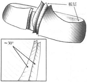 图1-28 椎间盘的板层(胶原纤维层)与水平方向成30°角