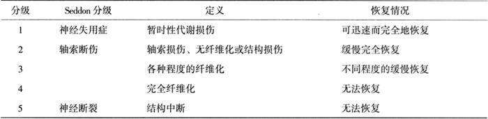| 释义 | 脊髓损伤后手功能重建 上肢瘫痪会导致其主要功能的损害。特别是双侧瘫痪时,应付日常活动的能力也严重受损。如果一个肢体中的肌-腱单位的功能尚存,可以考虑转移此功能单位到另一处,即牺牲一个功能而恢复另一功能。而恢复诸如夹捏(pinch grip)等简单的能力可以使肢体的功能得到很大的改善。 一、历史 肌腱转移应用于上肢功能重建中的历史已超过一个世纪。起初,这项技术用于产科的臂丛麻痹或脊髓灰质炎继发的麻痹的功能重建术中。随着手外科的发展,肌腱转移技术也得到了进一步发展。20世纪中叶,肌腱转移技术在复合性周围神经损伤包括正中神经、尺神经和桡神经损伤等的应用上有更大进展。许多外科医生对此领域的发展作出了贡献,其中包括Bunnell、Boyes、Brand、Burkhalter、Goldner、Littler、Moberg,、Omer、Phalen、Riordan和Zancolli等。 20世纪的后叶,显微外科技术的进展,使游离肌肉移植作为麻痹功能重建术的一种手段成为可能。当功能性电刺激和显微外科等新技术为重建术添加新的内容的同时,肌腱转移仍然是上肢麻痹处理中的一个主要手段。 二、病因学 上肢麻痹通常是周围神经系统创伤和直接损伤的结果。贯通伤可导致正中神经、尺神经或桡神经的横断,若位置靠近心端时可引起臂丛损伤。钝挫伤并不常导致周围神经的损伤,而是更多地伤及臂丛或神经根,从而可能损及上肢的运动功能。 创伤同时也是脊髓损伤导致上肢麻痹的首要原因,它可引起双侧功能的丧失,但两侧功能受损的程度可能不同。 除了创伤之外,其他原因引起的神经源性麻痹也可发生,而且手术处理的效果往往不佳。这些原因包括卒中和多发性硬化或脑瘫等神经源性疾病。 肌腱和肌肉实质的丧失可能由创伤或风湿性疾病引起。磨损导致的肌腱断裂或风湿疾病引起的肌腱弱化通常使肌腱实质受到很大的破坏,而需要肌腱转移来替代其丧失的功能。手和腕的每一条肌腱的断裂可能都和类风湿性关节炎有关,后者通常引起手指或拇指伸肌腱的断裂。 三、病理生理学 麻痹可能继发于直接的肌肉破坏,但通常由失神经支配引起。所以,从生理学的角度,对上肢麻痹首先要考虑神经支配的情况。对神经损伤可分为1~5级(表15-1)。 表15-1 神经损伤的分级