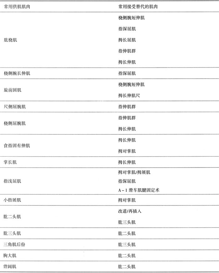 表15-3 常用供肌肌肉及接受替代的肌肉