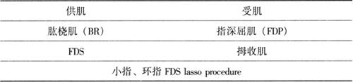 图15-13 臂丛损伤后肌腱转移及肌腱固定术重建拇屈曲功能