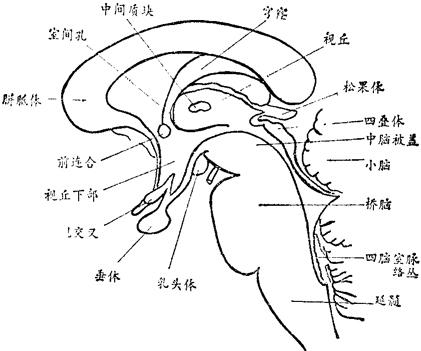 | 释义 | 脑干 脑干由延髓、桥脑和中脑组成。中脑上端接间脑,延髓下端在枕大孔处与脊髓相连。脑干是脑部所有重要传导束的共同通道,又是多数颅神经核(除嗅、视神经外)所在。 (一)脑干外形: 脑干腹侧面:其中部为大量横行纤维隆起,是桥脑的基底部,其上方为中脑,下方为延髓。中脑两侧的纵行隆起为大脑脚,是大脑半球下行运动束。此束在延髓中线两侧形成两个隆起,叫锥体,其双侧纤维大部交叉,形成锥体交叉。 脑干背侧面:在中脑有四个圆形隆起,叫四叠体,上方两个叫上丘,与视路有关;下方两个叫下丘,与听觉路径有关。四叠体首端为松果体,四叠体侧面各有称上丘臂与下丘臂的结构。桥脑与延髓背面共同构成菱形窝,为第四脑室底部,桥脑的横行纤维在两侧聚成索状,称桥脑臂,或称小脑中脚(图14、15、16)。