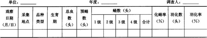 表7-99 荔枝蒂蛀虫落地果室内逐日观察记录表