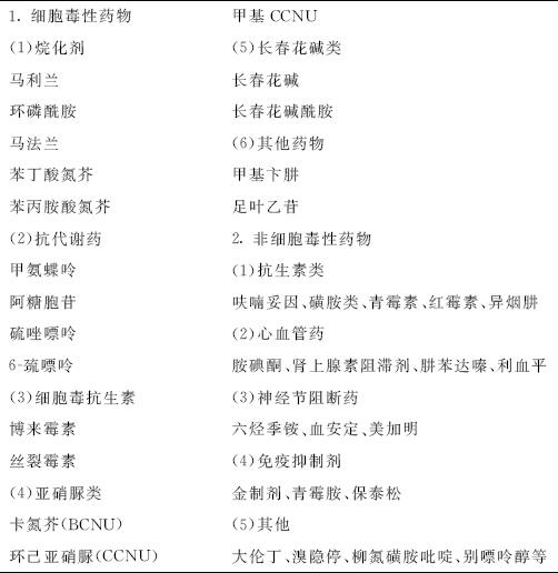 | 释义 | 药物性肺损害 一、概述 药物所至肺疾病指治疗药物所导致的呼吸系统损害。有超过300种处方药物会对肺造成永久性或一过性损害。药物所致的肺损害所出现的速度有快有慢,可以在用药后很短时间内出现,也可以在用药数年后出现。药物性肺损害表现多种多样,但常将间质性肺炎、过敏性肺炎、嗜酸粒细胞性肺炎称为药物性肺炎。除药物外,健康食品或其提取物也可导致肺损害,其中某些健康食品导致的闭塞性细支气管炎已受到广泛关注。 二、流行病学 药物性肺损害在临床上并不少见。例如,有大约5%的患者在接受胺碘酮治疗时出现肺疾病;而在使用血管紧张素转换酶抑制剂的患者中,有15%出现刺激性咳嗽。据估计,药源性肺病约占全身药物不良反应的5%~8%,在住院患者中有2%~5%是因为药物不良反应,药源性死亡约占住院死亡人数的0.3%~3%。 三、病因与发病机制 本病的基本发生机制为直接损害肺组织的细胞损害和过敏性或免疫反应引起的非细胞损害或过敏性损害两大类。但事实上除少数药物外,药物性肺损害的发生机制均不清楚。 细胞损害系直接损害肺泡上皮细胞、气管上皮细胞和毛细血管而发生炎症,肺泡因间质炎症、慢性化,而进展为肺纤维化。这种损害与药物浓度有关,并呈不可逆性,常见于抗癌药、免疫抑制剂和干扰素等。过敏性损害是免疫细胞激活所致,而药物作为半抗原或抗原样物质发挥作用,表现为Ⅰ、Ⅲ和Ⅳ型变态反应。实际上,由于多种背景因素的相互作用,使得本病发生机制更加复杂化。背景因素包括遗传因素(药物代谢系统基因、免疫相关基因等)、个体的年龄(年龄增长现象)、性别、既往的肺部疾病(尤其是慢性炎症性肺疾病)和合用药物的协同作用等。 关于药物的危险因素应注意以下几点:①危险因素是由临床诊断的病例总结出来的,但所收集的病例并不是根据统一标准来诊断的,诊断依据较模糊;②某种药物可引起多种肺损害病变类型,而不能局限于特定危险因素所对应的病变类型;③有些病变的发病机制是细胞毒性,存在量效关系,因此是基于变态反应的特定个体,其危险因素各不相同;④预后与年龄、呼吸储备功能以及是否存在其他疾病等相关。由于存在这些因素,危险因素的评价受到限制。临床诊断药物性肺炎,一般是通过用药与肺损害发病及好转时间的关系来排除其他疾病,只要不再次用药以证明能诱发症状就很难确诊。因此,很多诊断仅为疑诊,而危险因素的鉴定也由于诊断不明而难以确定。而且,通常应用的药物不止一种,因此诊断及危险因素的鉴定就变得越发困难。另一方面,药物性肺损害的发病机制与危险因素密切相关。细胞毒性药物随着年龄和剂量的增加更易发病,因此预防发病有某种程度的可能性。 将药物性肺损害的危险因素和预后不良因素分别列举出来,会发现有很多相同之处,例如年龄、剂量、合并间质性肺炎、肾功能损害、高浓度氧疗、联合放疗、应用抗癌药或有化疗史、应用易引起肺损害的药物、基础呼吸功能、营养状态及全身状态等。 1.年龄 细胞损害性药物引起肺损害与活性氧有关。抗氧化能力下降的高龄者容易发生肺损害,博来霉素是典型的例子。尽管甲氨蝶呤产生的肺损害会随着年龄的增加而增多,但其与抗氧化能力降低无关;相反,卡氮芥(BCNU)则年龄越轻越易发病。据推测,这不仅是由于抗氧化能力降低,而且随着年龄的增加,药物代谢酶的活性、抗炎症反应以及修复能力等都降低。因此,一般情况下高龄者易发生肺损害,而且一旦发病则易预后不良,吉非替尼即具有代表性。 2.总剂量 总剂量在损害程度、药物蓄积方面影响肺损害发病。另一方面,其与因特异性体质而发生过敏性肺损害形成两个极端。博来霉素、白消安、卡氮芥是代表性药物。应用博来霉素总剂量超过450~500mg,马利兰超过500mg,则肺损害的发生率迅速增加;而小剂量应用则发生肺损害较少。通过药物细胞内蓄积引起肺损害的胺碘酮,发病呈剂量依赖性,小剂量(200mg/d)发生率低(0.1%~0.5%),大剂量(500mg/d)发生率为5%~15%,1200mg/d剂量发生率则高达50%。 3.放射线照射 放射线照射通过在局部生成活性氧损害肺脏,而引起放射性肺炎。放射线照射与细胞伤害性药物有协同作用,引起间质性肺炎和急性肺损伤等肺损害;尤其是既往有间质性肺炎者,可急性加重。众所周知,博来霉素、白消安、丝裂霉素C等药物、伊立替康、紫杉醇等新型抗癌药以及吉非替尼也可诱发或加重放射线性间质性肺炎。 4.氧疗 与放射线照射一样,吸入高浓度氧也可产生活性氧。博来霉素用药6个月后,吸入高浓度氧也是肺损害的危险因素。 四、分类 由于引起肺损害的药物众多,临床表现也多种多样,可涉及几乎所有的肺部疾病类型。Dijon大学医学中心的Philippe Camus教授及其研究小组在这个疾病分类中,列出了11大类和51小类病变类型,可见药物所致的肺损害的类型繁多。 表5-6 药物性肺损害分类
