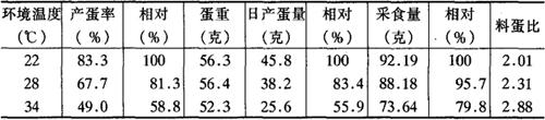 | 释义 | 营养与环境 鸡对营养物质的吸收与利用离不开一定的环境条件,营养与环境有密不可分的关系。 1.环境温度对采食量与生产性能的影响 鸡有种本能,当采食的饲料中能量达到某种程度后,便停止了采食,即所谓的“因能而食”。当外界环境温度升高后,鸡用于维持体温的能量减少,采食也减少了;在饲料配方不变的情况下,采食的蛋白质、矿物质、维生素都相应要减少,但这时蛋鸡仍要产蛋,生长鸡要发育,如得不到适量补充,就要影响到产蛋与生长发育。表5-5是王新谋先生的研究结果。 表5-5 温度对蛋鸡采食量与生产性能的影响