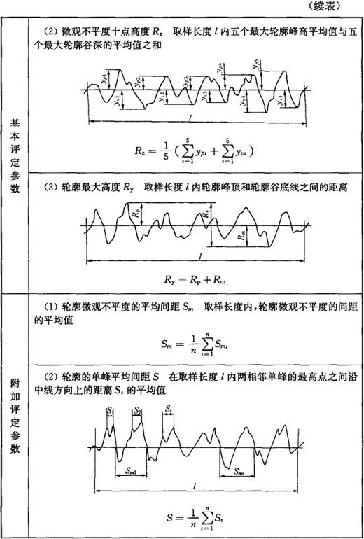 表1-27 微观不平度十点高度Rz、轮廓最大高度Ry的数值 (μm)