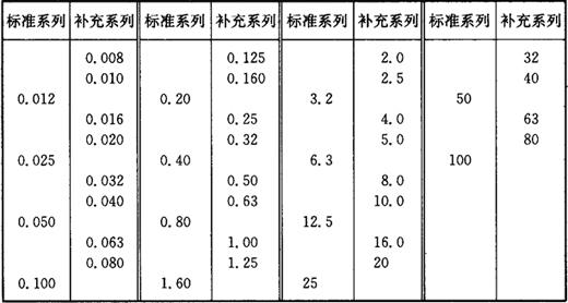 表1-28 轮廓微观不平度的平均间距Sm轮廓的单峰平均间距S的数值 (μm)