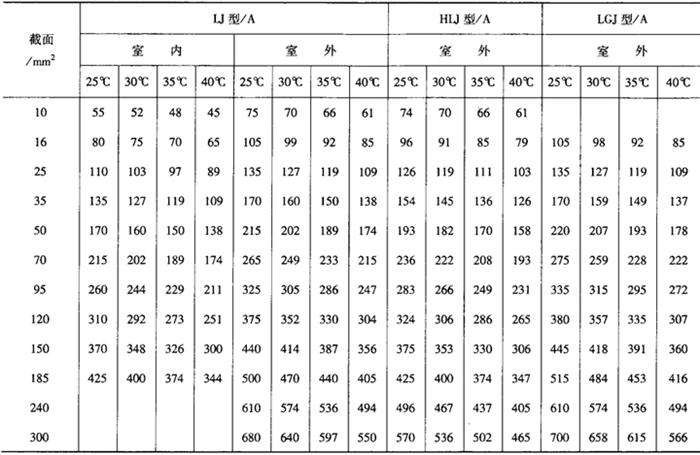 铝绞线LJ、HLJ钢芯铝绞线LGJ的载流量列于表12-37。