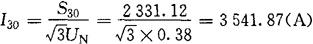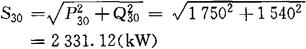 [例6-5] 已知有一个一班制电器开关制造厂,其用电设备容量为5000kW,额定电压为380V,试确定该厂的计算负荷。 [解] 查表6-3取K′x=0.35,cosφ=0.75,因表6-3中未列tanφ,故tanφ=tan(cos-10.75)=0.88。 全厂有功计算负荷 全厂无功计算负荷 Q30=P30tanφ=1750×0.88=1540(kW) 全厂视在计算负荷