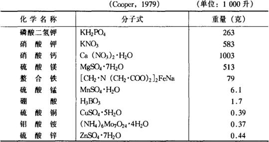 | 释义 | 设施栽培施肥技术 设施栽培包括各类温室栽培及各种塑料大棚等多种形式栽培。设施栽培可以避免狂风、暴雨、霜冻等自然灾害对花卉的摧残,还可以将光、温、湿度、二氧化碳调整到符合所栽培花卉生理、生态需要的最佳状况,所以是生产高质量优质花的必备条件。当今世界各国有竞争力的优质花卉绝大部分是设施栽培的产物。 1.无土栽培 无土栽培是用无活力的基质来栽培菊花的。 现在用于商业系统的主要是两种,即营养膜技术和岩棉栽培,岩棉栽培已经用于月季切花生产,简介如下: 岩棉栽培自1970年丹麦生产园艺岩棉以来,发展很快,1980年荷兰温室用岩棉生产约180公顷,到1983年为1000公顷,欧美各国纷纷采用此技术,目前我国已有生产销售。 岩棉栽培月季常采用较大的岩棉块,长75~125厘米,宽15~30厘米,高7.5厘米。岩棉块要求分别用聚乙烯薄膜纵向(即纹理垂直)包裹,这是为了减少蒸发和防止根系扩散到相邻的立方体,同时可避免因栽培床不平,使营养液聚集在较低处。较窄的岩棉可首尾相连在栽培床上排成双行,较宽的岩棉片可以排成单行栽培床,按预定行、株距栽培植物。热带地区岩棉块可以不用聚乙烯薄膜包裹,以利用水分蒸发使根层容易冷却,但是,在岩棉块之间应放乙烯薄膜隔离,防止岩片块之间的营养液通过毛细管作用吸取,以及防止高处营养液不足,低处营养液过多和病害扩散问题。但是要在接近底边处,将薄膜切开一条狭长的口,以利于营养液水平流遍岩棉块。 营养液的配方见表6-1。 表6-1 理想的营养膜栽培浓度所要求的化合物重量