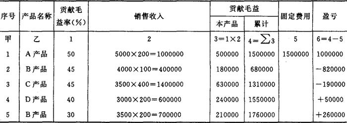 (2)计算销售收入、贡献毛益及盈亏额,见表2所示。 表2 金额单位:元