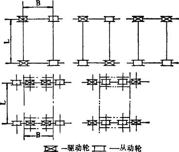 堆坨机运行轮组一般分驱动轮和被动轮,轮矩一般取B/L≥1/4~1/6,如图4-4-36。