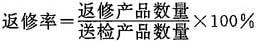 返工修理的产品数量与送检产品的比例。返修率高,说明合格率低。用公式表示为:
