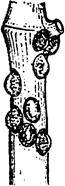 图52 葡萄远东盔蚧(李知行,2000年) (2)形态特征 雌成虫黄褐色或红褐色,扁椭圆形,体长3.6~6毫米,宽3~5.5毫米。体背中央有4列纵排断续的凹陷,凹陷内外形成5条隆背,体背边缘有横列的皱褶,排列规则,腹部末端具臀裂缝。 1~2龄若虫体长0.4~1毫米,扁平,黄或黄褐色,背面稍隆起,椭圆形,触角念珠状,足3对,能爬行,尾末有两根白长毛。若虫越冬前变赭褐色,越冬后体背隆起,呈黄褐色,体边缘出现皱褶,褐色,体背面生长多根白色细毛,蜡线消失分泌大量白色蜡粉。 卵长椭圆形,淡黄色,孵化前呈粉红色,长0.5~0.6毫米,卵上覆盖蜡质白粉。 (3)发生规律 每年发生2代。以2龄若虫在老蔓翘皮下裂缝中及叶痕处越冬。次年3月中、下旬开始活动,先后爬到枝条上寻找适宜场合固着为害,4月上旬虫体膨大,并逐渐硬化变为成虫,4月末或5月初开始在体下介壳内产卵,5月中旬为产卵盛期,5月下旬至6月初为若虫孵化期,这时若虫爬到叶片背面叶柄上固着为害,6月中旬迁回枝条的绿色部分,7月下旬变成成虫,7月末至8月上旬产卵,第二代若虫8月间孵化,8月中旬为盛期,若虫爬到叶片背面为害,至10月间迁回树体老蔓翘皮下裂缝中越冬。 (4)防治方法 苗木检验,不用带虫接穗,不用刺槐做放风林树种。保护利用天敌,少用或不用广谱性药剂防治,冬季或早春利用3~5波美度石硫合剂进行铲除。 生长期抓住两个关键期:即4月上、中旬虫体开始膨大时喷0.5波美度石硫合剂、50%敌敌畏500倍液;第二个关键期是5月下旬至6月上旬卵孵化盛期喷0.1~0.5波美度石硫合剂或40%乐果1000倍液、50%杀螟松乳油1000倍液、25%亚胺硫磷300~500倍液、50%马拉松乳油800~1000倍液。 |