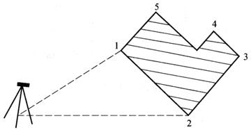 1)人工建造的建(构)筑物的轮廓线转折点,由于一般建(构)筑物平面多为规则的几何图形,如图7-29所示的房屋,只需选择1、2两角点为碎部点,将它测定,然后用钢尺量出23、34及15各边的长度,即可用几何作图,将这座房屋的平面绘出。