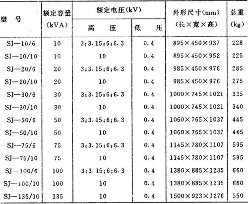 查表选择配电变压器,其产品目录如下: