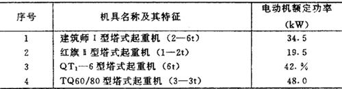 表9-10 施工机具电动机额定容量参数