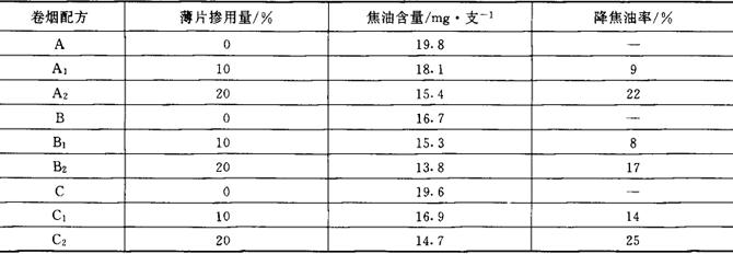 表4-5-2 法国造纸法薄片对卷烟焦油的影响
