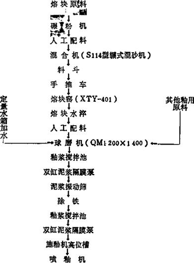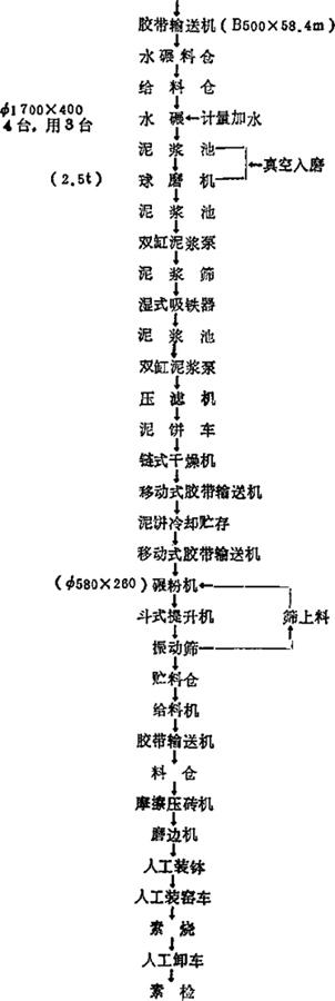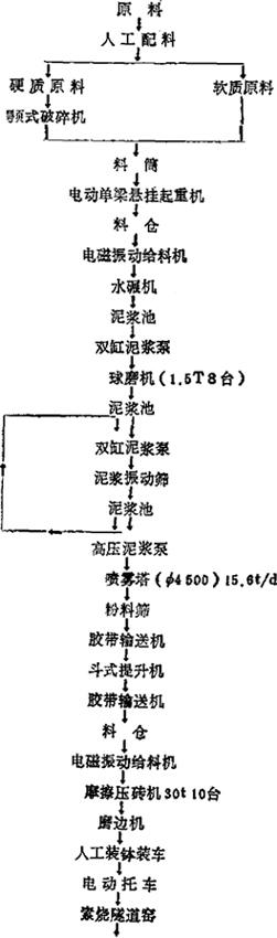 | 释义 | 釉面砖工艺流程(1984年收集) 1.某厂工艺流程(釉面砖),见图6-1。