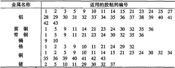 | 释义 | 金属的胶接 (1)同种金属胶接适用的胶粘剂 如表8-23所示. 表8-23 同种金属胶接适用的胶粘剂