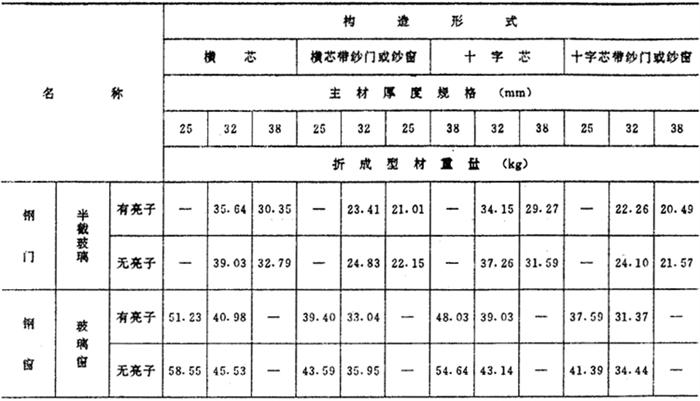 | 字词 | 钢门窗面积与型钢重量换算表 |