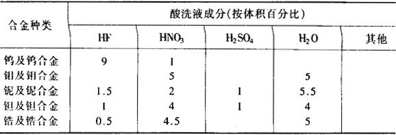 (2)母材应是退火状态,焊前需严格去净油污,然后进行酸洗。酸洗液成分见表10-94。 表10-94 酸洗液成分